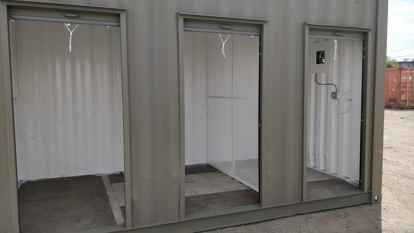 The roll-up door eliminates the extra space required for a cargo swing door. With sizes ranging from 3′ to 24′ wide, customize your container with a roll up door that best fits your storage access demands. All roll-up doors have a height of 6’8″ and 7’4″ is optional on high cube containers.