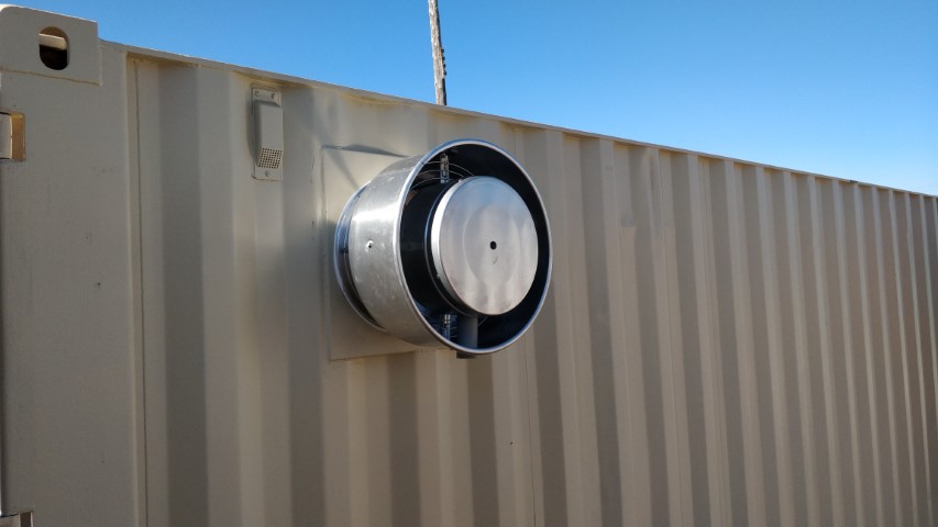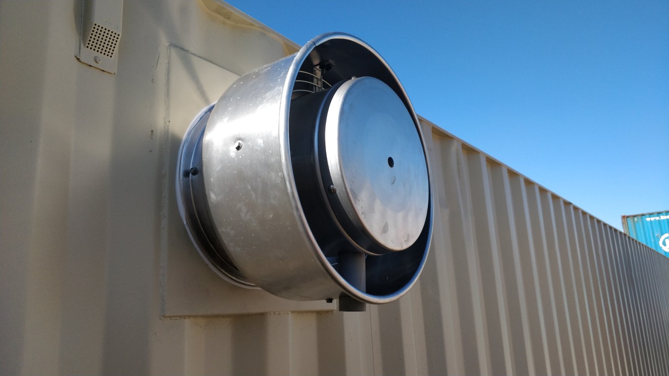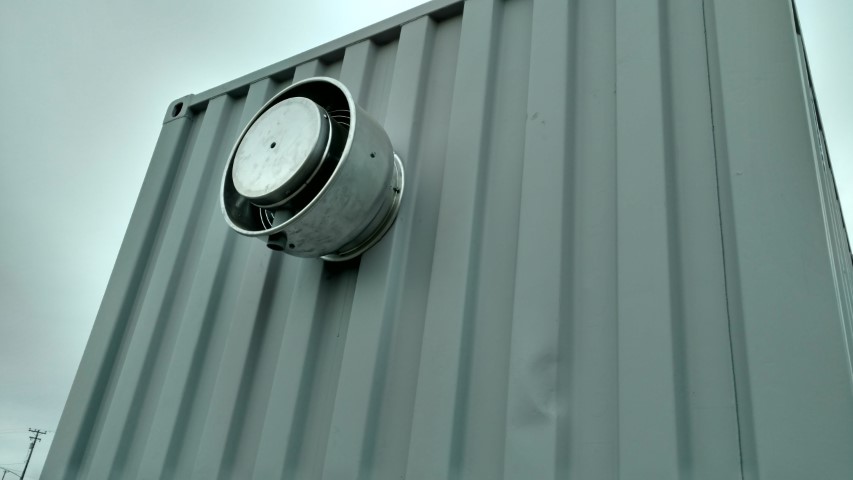 The power vent is the best solution to circulate interior air. It maintains interior freshness and prevents moisture build up. The unit can be placed on any side of the container. It requires a custom installation on most units.